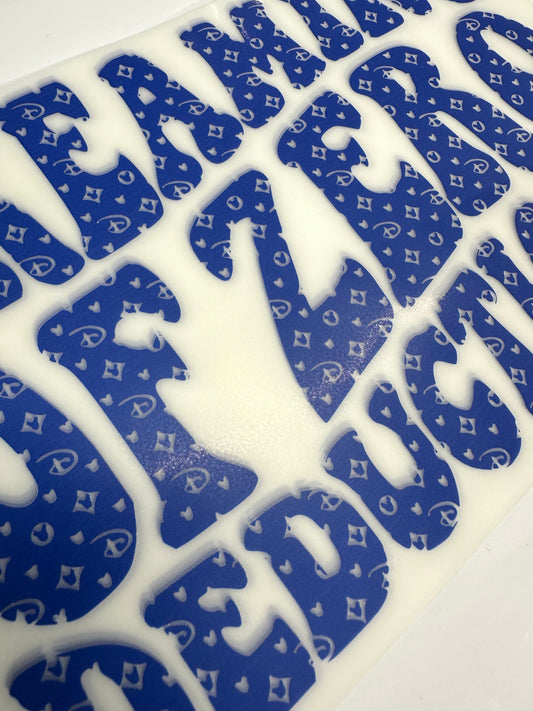Cheer Gigi Royal Blue Glitter Rhinestone Transfers 11”